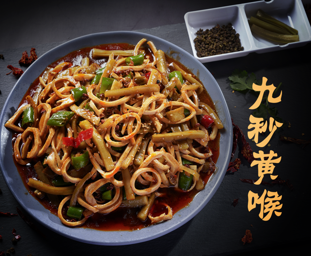 Tender, chewy, and incredibly flavorful! This traditional Chinese dish features thinly sliced beef aorta (a popular delicacy in Sichuan cuisine), quickly stir-fried with chili peppers, green peppers, garlic, and Sichuan peppercorns. Served hot in a rich, spicy sauce with a unique numbing kick. A bold taste adventure for spice lovers!